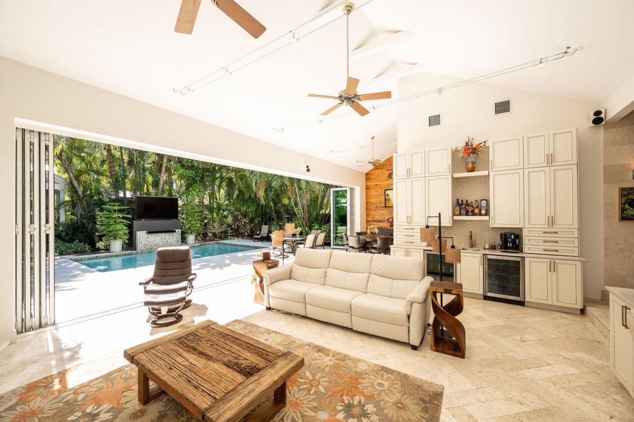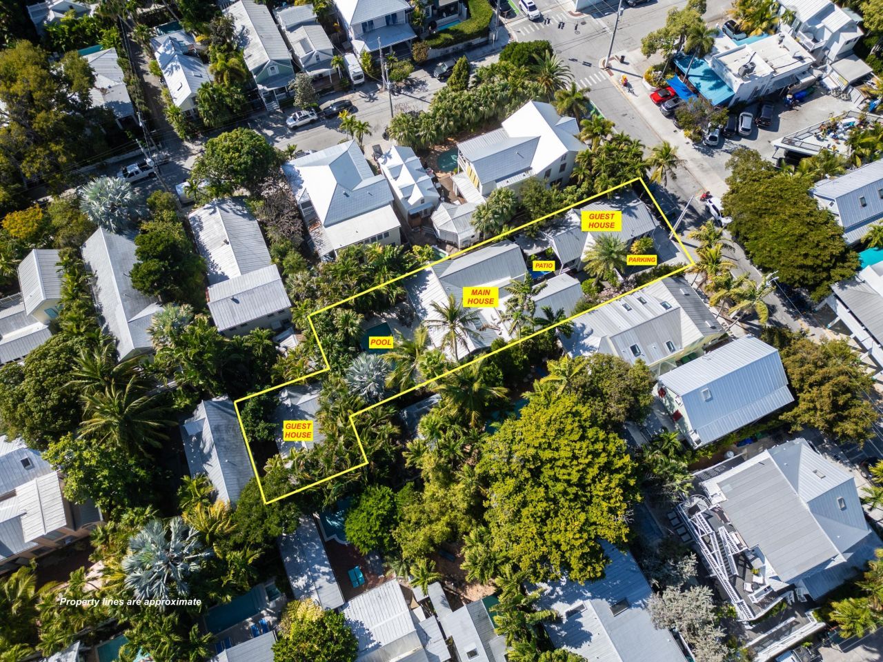 MOTIVATED SELLERS! Exceptional Old Town estate with pool, gardens, and 2 guest houses in the heart of Key West. This impeccable property blends timeless architecture with modern updates across three beautifully appointed structures. Behind a privacy wall & gate, the estate includes a grand main residence and two guest houses (both with kitchenettes), offering a total of four bedrooms and four-and-a-half baths. The main house welcomes you with an open floor plan, soaring ceilings, and a light-fil...MOTIVATED SELLERS! Exceptional Old Town estate with pool, gardens, and 2 guest houses in the heart of Key West. This impeccable property blends timeless architecture with modern updates across three beautifully appointed structures. Behind a privacy wall & gate, the estate includes a grand main residence and two guest houses (both with kitchenettes), offering a total of four bedrooms and four-and-a-half baths. The main house welcomes you with an open floor plan, soaring ceilings, and a light-filled living and dining area. A dramatic wall of glass featuring new 40-foot impact-rated Nana doors and skylights opens to reveal lush tropical gardens and a resurfaced PebbleTec pool with a cascading waterfall. The heated, chilled, and saltwater-converted pool includes new tiled coping and a remote-controlled waterproof outdoor TV for movies or game nights under the stars. The gourmet kitchen features top-of-the-line appliances, Italian cabinetry, Silestone countertops, and a new espresso bar with wine cooler and beverage center. Real stone and hardwood floors run throughout, including two spacious bedrooms, each with an en-suite bath. The primary suite offers French doors and a spa-like bathroom with premium fixtures. The front guest house provides flexible living space currently a den or ''man cave'' with a bedroom, pantry kitchen, and a stunning bath clad in rare iridescent Czechoslovakian green glass from the 1950s. The rear guest cottage, tucked at the back of the property, includes its own sitting & dining areas, wet-bar, vaulted ceilings, a unique bath with outdoor shower & a private porch overlooking the pool & garden. Additional upgrades include a whole-house generator, new exterior lighting and irrigation by Blue Island, a state-of-the-art sound system, hurricane and plantation shutters, fresh exterior paint, and lush landscaping. 2 off-street parking spaces complete this remarkable Old Town retreat.