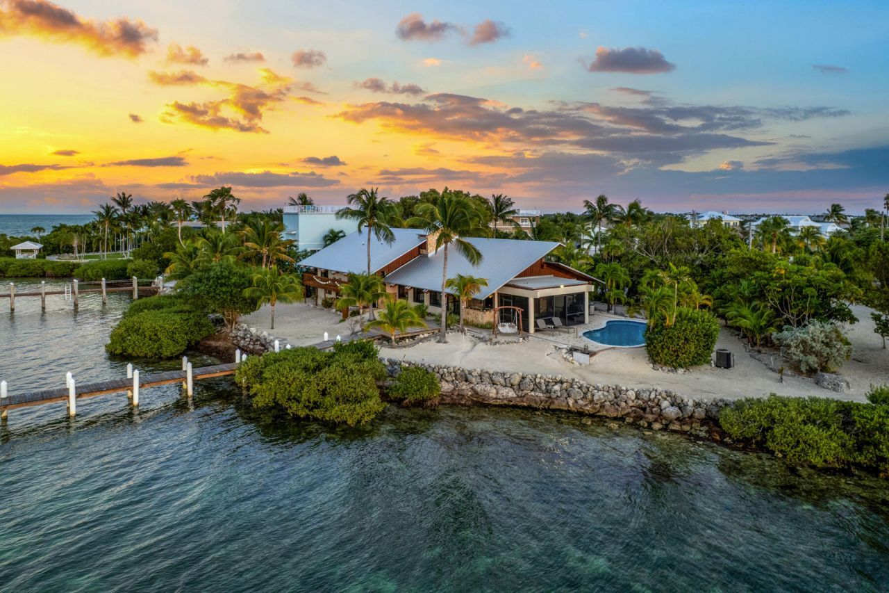 Experience the charm and character of this Gulf-front Old Florida Keys fishing lodge located in Stirrup Key, one of Marathon's most exclusive gated communities. Known for its large estate lots, deep-water access, and serene open-Gulf vistas, Stirrup Key offers privacy, prestige, and a true island lifestyle, just minutes from the conveniences of Marathon. The property consists of two lots in total for a combined size of 39,500 sf. The home sits on one of the few deep-water sites in Stirrup Key wi...Experience the charm and character of this Gulf-front Old Florida Keys fishing lodge located in Stirrup Key, one of Marathon's most exclusive gated communities. Known for its large estate lots, deep-water access, and serene open-Gulf vistas, Stirrup Key offers privacy, prestige, and a true island lifestyle, just minutes from the conveniences of Marathon. The property consists of two lots in total for a combined size of 39,500 sf. The home sits on one of the few deep-water sites in Stirrup Key with upgraded 165 foot pier dock with 6 new pilings, where the water is so clear you can watch tarpon, angelfish, snapper, nurse sharks, lobsters and rays gliding beneath the dock. Beautifully maintained and elevated above flood, the residence features 3 bedrooms, 3 baths, and a loft that can serve as a fourth bedroom or home office. Brand new roof and impact windows and sliders were recently installed for peace of mind. The open-concept great room boasts massive ceilings and walls of windows showcasing 180-degree Gulf views. A spacious kitchen with center island and new range, Gulf front bar, wide overhanging eaves, exposed wood beams, and natural stone accents showcase classic tropical lodge architecture, perfect for entertaining. The primary suite with a large ensuite bath provide comfort and style, while a screened porch opens to the heated pool, positioned behind lush landscaping for afternoon shade. Outdoors, you'll find a sandy beach area, irrigated native landscaping, and expansive decks perfect for sunset gatherings. Additional amenities include two garage bays, one carport bay, a workshop, garden shed, and abundant storage. Stirrup Key residents enjoy the peace of a gated, low-density community with a 365 day rental minimum, ensuring tranquility and exclusivity year-round. With its unmatched combination of deep water, open-Gulf views, and spacious multi-lot layout, this property is a true rarity in the Florida Keys with potential for expansion.