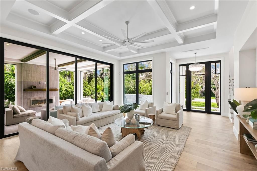 REDUCED AGAIN FOR BEST BUY! NEW CONSTRUCTION! 2 BLOCKS TO OLD NAPLES and 11 SHORT BLKS to the BEACH! PRICING CANT COMPARE!! This New Construction home is built to the finest standards. CONCRETE block on both floors and poured CONCRETE FLOOR UPSTAIRS for sound and storm safety. This home offers a highest level of quality and attention to detail from Jerulle Builders! Known for taking “no short cuts” in the unseen part of their construction, the entire product matches the exterior ...REDUCED AGAIN FOR BEST BUY! NEW CONSTRUCTION! 2 BLOCKS TO OLD NAPLES and 11 SHORT BLKS to the BEACH! PRICING CANT COMPARE!! This New Construction home is built to the finest standards. CONCRETE block on both floors and poured CONCRETE FLOOR UPSTAIRS for sound and storm safety. This home offers a highest level of quality and attention to detail from Jerulle Builders! Known for taking “no short cuts” in the unseen part of their construction, the entire product matches the exterior beauty of their fine finishes and design. The exterior charm is timeless with the look of downtown Naples; never to be labeled as dated. At the front door, you hear alluring waterfalls, see the blue tiled pool and feel the excitement this property offers! Enter into a refreshing vision of expansive wide plank WOOD floors and a view of the great room with distant view of the open kitchen and generous dining area. Everywhere, there is a vision of beauty drawing you to imagine grilling in the covered Outdoor Living with Fireplace or lounging on the sunny pool deck. The kitchen features unique gorgeous Quartzite stone counters, top of the line Thermador appliances, gas cooking, double ovens, micro drawer and a spectacular hidden pantry. Volume ceilings give the appearance of large spaces and the dining room, surrounded by sunlit windows and landscapes, is no exception. The Great Room wall of glass opens wide to include outdoor cooking, cool evenings beside the fireplace, or sunbathing beside the sparkling blue pool and waterfalls. The large first floor laundry and powder bath lead to a tucked away Primary Bedroom featuring a spa bath with truly beautiful marble-look tile and two huge closets. UPSTAIRS is something extraordinary! A sitting area atop the stairs, under a chic chandelier of note, leads to the study overlooking the 7th tree-lined avenue. Pass through the chic morning bar with frig, sink and wall of chic shelving to a second primary bedroom with vaulted ceiling and sunlit balcony over the pool. Two large additional bedrooms en suite, and second UPSTAIRS LAUNDRY make this home The One! Construction Features include: All Concrete Block both floors, Concrete floor second level, Storm Windows and Doors, Perimeter waterproofed windows, doors and slabs; Drywall upgrades for sound and mold resistance; Sound resistant stairs; Lanai screens and hurricane shutters and more! This is a Smart Home with all the bells and whistles. Add to all of that, this home is on 7th Avenue North, home of the Naples Beach Club (Four Seasons)! Walk or cart there for the upcoming Naples hot spot, or short blocks to the iconic downtown Naples for world class shops and dining!