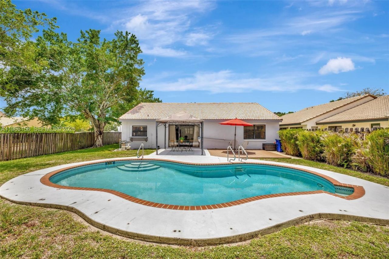 Your future home awaits! Welcome to this charming corner lot home in the highly sought-after Rock Creek community in Cooper City; known for its fantastic schools. This home features a beautifully renovated kitchen with granite countertops, large pantry, two glass cabinet doors, elegant tile backsplash & kitchen window with passthrough to back patio and pool area. Spacious primary bedroom features flowing natural light, and walk-in closet. Primary bathroom features double vanity, large tub, step-...Your future home awaits! Welcome to this charming corner lot home in the highly sought-after Rock Creek community in Cooper City; known for its fantastic schools. This home features a beautifully renovated kitchen with granite countertops, large pantry, two glass cabinet doors, elegant tile backsplash & kitchen window with passthrough to back patio and pool area. Spacious primary bedroom features flowing natural light, and walk-in closet. Primary bathroom features double vanity, large tub, step-down shower with glass doors, NEW water-resistant floors in modern style. Enjoy high ceilings & a spacious living & dining areas, along with a renovated 2nd bath. Flooring includes terracotta brick & laminate throughout. Step outside to a private pool & great backyard with a covered space, perfect for relaxing & entertaining. Additional features include new washer, paver driveway, Ring camera, hurricane panels, impact front door & new impact garage doors, cement slab perfect for a shed. Tile roof 19 yrs old in great condition. Access to Cooper City Pool and Tennis Center. A place to truly feel at home.