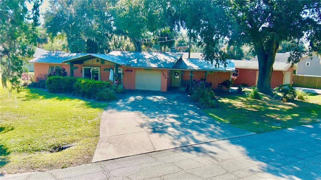PRICE REDUCED 20k on this unique home that is situated on a large corner lot, shaded by oak trees. The most recent remodel which has made the home both eclectic and modern was completed in 2025. The interior features all new cabinets and counter tops as well as plank flooring throughout. Numerous custom features include a unique wet bar, interior doors & hand stained trim, windows, a metal ceiling with custom exposed trusses and lighting fixtures. You can entertain guests or just have room to play on the covered front porch and deck in the large backyard, that is fully fenced. There is also a detached 1 car garage in addition to the attached 1 car garage, for all your toys. Spray foam insulation, metal roof and newer HVAC (11/22) add efficiency and value. This home has many unique features and craftsmanship which is not easily replicated and must be seen to truly be appreciated.