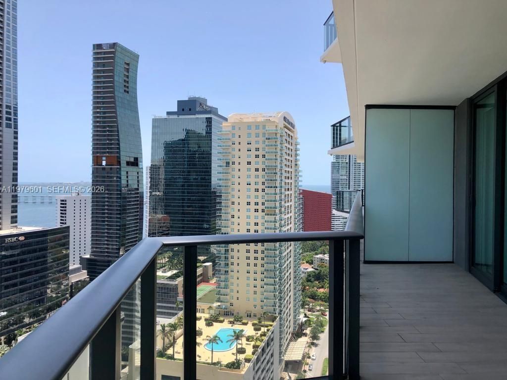 Spectacular east-facing city and bay views from this unit located just minutes from the booming Brickell area. Enjoy trendy restaurants, shops, and bars within walking distance. Beige ceramic flooring throughout and stylish furniture by West Elm. Versatile den can be used as an office or separate dining area. Open kitchen with countertop seating, perfect for entertaining, and top-of-the-line appliances. Spacious primary bedroom with terrace access and custom designer closets. Primary bathroom fe...Spectacular east-facing city and bay views from this unit located just minutes from the booming Brickell area. Enjoy trendy restaurants, shops, and bars within walking distance. Beige ceramic flooring throughout and stylish furniture by West Elm. Versatile den can be used as an office or separate dining area. Open kitchen with countertop seating, perfect for entertaining, and top-of-the-line appliances. Spacious primary bedroom with terrace access and custom designer closets. Primary bathroom features double sinks, a separate tub, and shower. Washer and dryer inside the unit. Includes one parking space and valet for guests. Amenities include a rooftop pool and wet bar, state-of-the-art fitness center, sauna, business center, movie theater, party room, and valet. Metromover station half a block away. Unit is sold unfurnished.