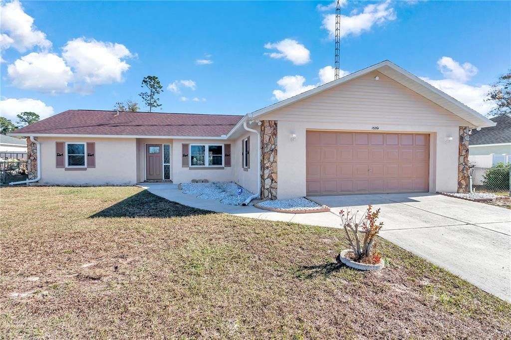 Edit mortgage details for a more accurate paymentThis 3 bedroom 2 bath room with a 20 X 14 tiled Florida Room adjoining a 14 X 14 tiled patio. home is a beauty to behold and own. This home is priced to sell with the following features; All three rooms are modernly updated with new luxury vinyl waterproof flooring throughout. Master bathroom with En-Suite and walking in closet featuring standard size jacuzzi double sink vanities with quartz and cultured marble counter tops: impressive ceramic floor tiles, tiled shower with recessed lighting and stylish shower glass door. Awesome modern eat in kitchen with real wooden shaker front cabinets, granite counter tops, recessed lighting and brilliant skylight in kitchen. Brand new stainless steel appliances, include a 5 burner range, double door refrigerator, dishwasher, and OTR microwave oven. Hot water heater installed 2023, New HVAC system installed December 2024. New epoxy 2 car garage floor. New hurricane proof windows and entry doors. Roof less than 10 years old. Ceiling fans and more for you to behold. Neighborhood is very quiet and peaceful close to community and fitness center, Supermarket and medical facilities all within the Marion Oaks Community.