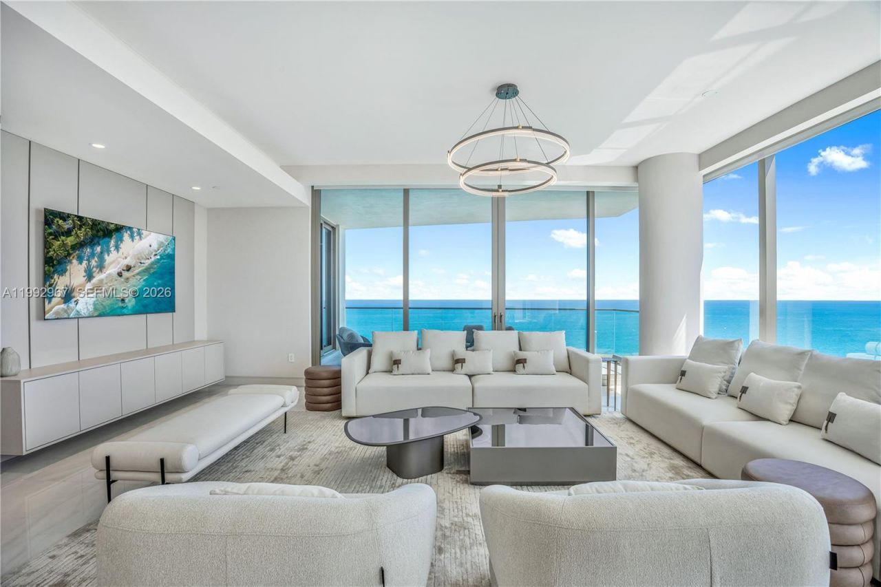 Magnificent 4 bedroom Donatello residence at the Estates at Acqualina offering breathtaking, unobstructed ocean views throughout, featuring floor-to-ceiling glass and expansive terraces. This highly sought-after layout features a one of a kind configuration with two primary suites, providing exceptional comfort, privacy, and flexibility.Impeccably designed and curated by renowned designer Ana Oz, the residence showcases a sophisticated, modern aesthetic with elegant finishes, custom millwork, an...Magnificent 4 bedroom Donatello residence at the Estates at Acqualina offering breathtaking, unobstructed ocean views throughout, featuring floor-to-ceiling glass and expansive terraces. This highly sought-after layout features a one of a kind configuration with two primary suites, providing exceptional comfort, privacy, and flexibility.Impeccably designed and curated by renowned designer Ana Oz, the residence showcases a sophisticated, modern aesthetic with elegant finishes, custom millwork, and beautifully appointed living spaces throughout. The open-concept layout seamlessly connects the living, dining, and entertaining areas, all oriented to capture stunning views of the Atlantic Ocean and coastline.The chefs kitchen is outfitted with top-of-the-line appliances and sleek Italian cabinetry, while spa-inspired bathrooms feature exquisite stonework and refined detailing. Custom walk-in closets and thoughtfully designed spaces enhance both functionality and luxury. Residents of the Estates at Acqualina enjoy an unparalleled lifestyle with world-class amenities.