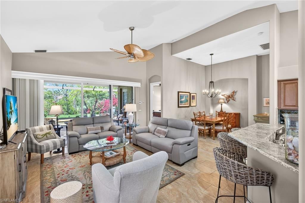Welcome to this beautifully updated single-family home in the sought after Glen Eagles neighborhood in Pelican Sound, the areas finest bundled golf community. This elegant and tastefully updated home features an open great room floor plan designed for easy Florida living and entertaining. The chef’s kitchen showcases granite countertops, Samsung stainless steel appliances, soft-close cabinetry, and a marble tile backsplash. The primary suite offers private lanai access, a walk-in closet,...Welcome to this beautifully updated single-family home in the sought after Glen Eagles neighborhood in Pelican Sound, the areas finest bundled golf community. This elegant and tastefully updated home features an open great room floor plan designed for easy Florida living and entertaining. The chef’s kitchen showcases granite countertops, Samsung stainless steel appliances, soft-close cabinetry, and a marble tile backsplash. The primary suite offers private lanai access, a walk-in closet, and a fully renovated en-suite bath with dual sinks, a walk-in shower with seamless glass, and a relaxing soaking tub. A separate guest wing provides two guest bedrooms and an updated bath with granite countertop and frameless shower door, ensuring comfort and privacy for visitors. Outdoor living shines with an expansive travertine-tiled lanai—perfect for alfresco dining or morning coffee—complete with an oversized in-ground spa and picture-frame screened enclosure overlooking the golf course and a stunning bougainvillea bush. Additional upgrades include new decorative ceramic tile throughout the living areas, hurricane screens, newer A/C and water heater, a new roof (2019), and a two-car garage with epoxy flooring and built-in storage cabinets. This home blends style, quality upgrades, and exceptional indoor-outdoor living. This home is being sold turnkey furnished, ready for its new owner to move in and start living a dream lifestyle! If you are looking for an active lifestyle look no further: 27 holes of Championship golf, 14 pickleball, 8 tennis and 6 bocce courts. State of the art fitness center that is professionally staffed. Pelican Sound is nestled up to the Estero River with access to the Gulf. The community offers dry boat storage, kayaks, canoes and paddle boarding, along with a shuttle boat to Lovers Key State Beach Park. Minutes from RSW International airport and surrounded by fabulous shopping and restaurants. Start living the dream!