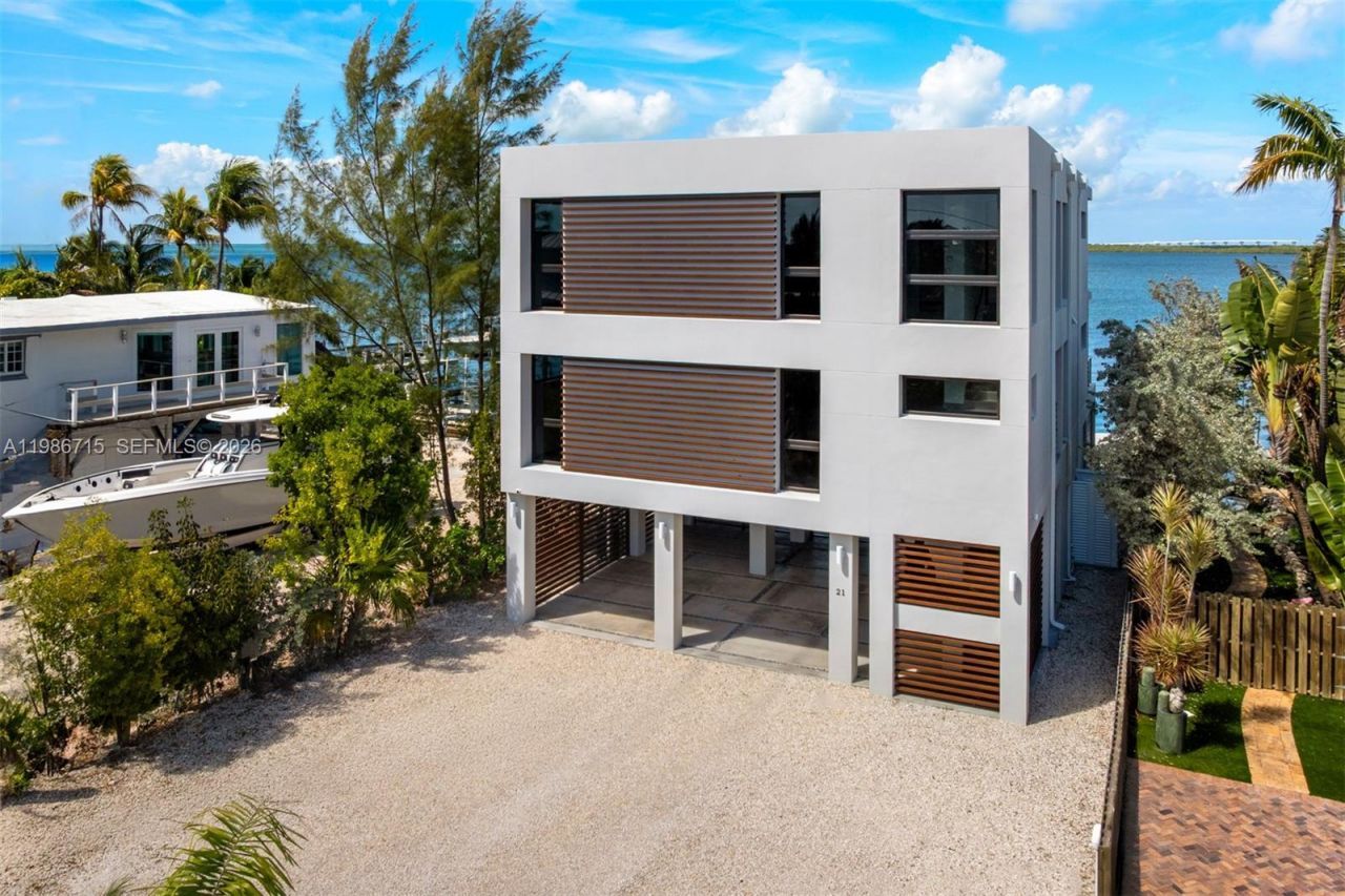 Modern bayfront residence in Key Largo, where minimalist architecture meets the natural beauty of the Florida Keys just 45 minutes from Miami. Designed by internationally acclaimed firm Resolution: 4 Architecture, whose work has been featured in Dwell, The Wall Street Journal, Architectural Record, and exhibited at MOMA, this architecturally significant waterfront home reflects a thoughtful balance of simplicity, light, and connection to nature. Constructed with ICF block and reinforced steel, t...Modern bayfront residence in Key Largo, where minimalist architecture meets the natural beauty of the Florida Keys just 45 minutes from Miami. Designed by internationally acclaimed firm Resolution: 4 Architecture, whose work has been featured in Dwell, The Wall Street Journal, Architectural Record, and exhibited at MOMA, this architecturally significant waterfront home reflects a thoughtful balance of simplicity, light, and connection to nature. Constructed with ICF block and reinforced steel, the residence offers exceptional structural integrity and storm resilience while maintaining a sleek, low-profile form that complements its bayfront setting. Inside, the home embraces a refined minimalist aesthetic where clean lines, open volumes, and natural materials allow the landscape and water views to take center stage. Thoughtful design prioritizes both form and function, with extensive built-in storage and floating wardrobe systems that maintain the homes sleek architectural lines while providing exceptional usability. An open-concept floor plan centers around a chefs kitchen that flows seamlessly into the living and dining areas while maintaining uninterrupted bayfront views. Bayfront dockage with approximately six feet of controlling water depth to the seawall provides excellent boating access to Florida Bay and the Atlantic Ocean. Two boat lifts and generous dockage accommodate multiple vessels.