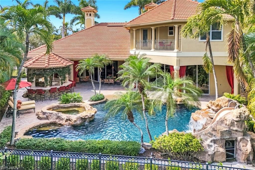 Convenient Pelican Marsh location in North Naples close to popular Mercado shopping and dining! Closest to 3 of 4 Pelican Marsh entrance gates ie; Vanderbilt Beach Road, Airport Road and Galleria shops! Within Watercrest, this lovely estate encompasses an oversized corner home site with a convenient large circle pavered driveway, three car garage with two lifts housing 3-5 cars or extra storage. Inside you will appreciate the authenticity of an amazing timeless Mediterranean inspired estate with...Convenient Pelican Marsh location in North Naples close to popular Mercado shopping and dining! Closest to 3 of 4 Pelican Marsh entrance gates ie; Vanderbilt Beach Road, Airport Road and Galleria shops! Within Watercrest, this lovely estate encompasses an oversized corner home site with a convenient large circle pavered driveway, three car garage with two lifts housing 3-5 cars or extra storage. Inside you will appreciate the authenticity of an amazing timeless Mediterranean inspired estate with a modern approach! Soft arches combined with natural materials and artisanal details results in a collected, relaxed European aesthetic. It’s resort style ambience in a private, effortless indoor outdoor living and entertainers retreat with European villa vibes-a classic foundation which transcends trends. Music enhanced front entrance opens to the formal, comfortable, living and dining spaces with a featured stone fireplace and a generous wet bar – an ideal setting for gatherings, large or small! Continue to the grand, yet inviting kitchen/family room with full resort style indoor outdoor pool, which boasts a fun rock slide, covered kitchen gazebo, and private villa style landscapes with lakeside fountain!