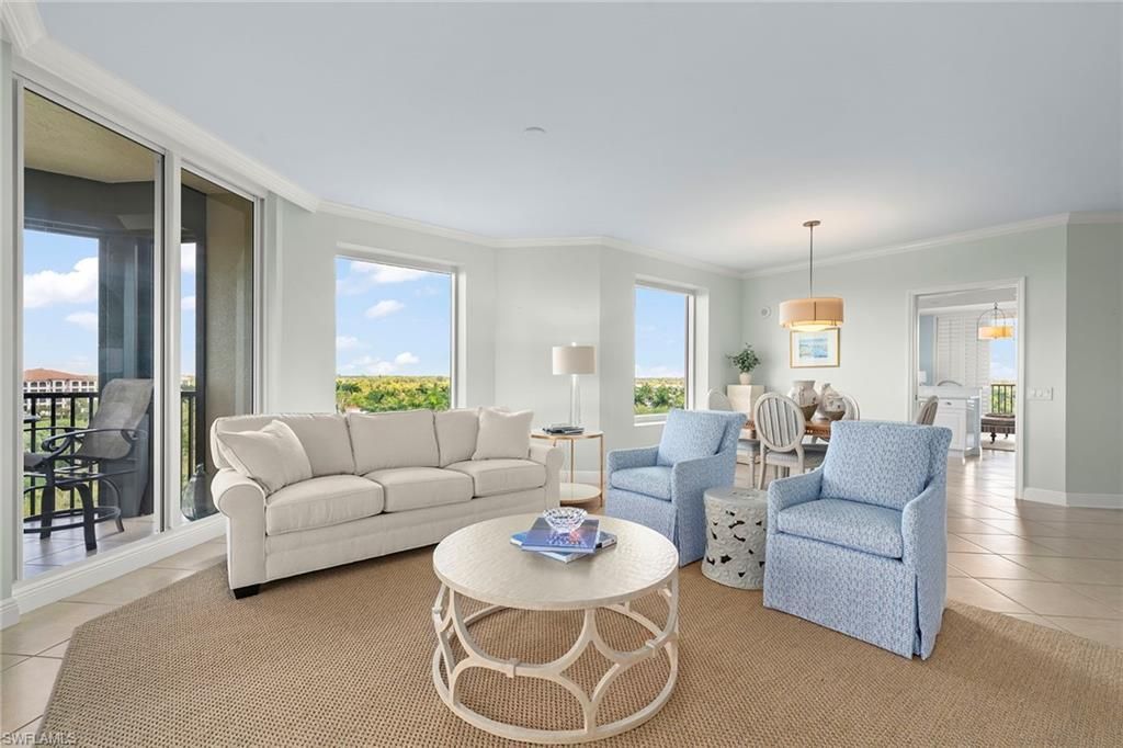 TRANSFERRABLE GOLF MEMBERSHIP AVAILABLE at prevailing rate. Enjoy golf immediately! Experience refined coastal luxury at Sorrento, where elegance and lifestyle unite in this light-filled end residence. From the moment you go inside, cheerful tones and artful accents create a warm yet sophisticated ambiance. The heart of the home showcases a beautifully updated kitchen, effortlessly flowing into the family gathering area where you can enjoy the incredible sunsets along with sweeping views of em...TRANSFERRABLE GOLF MEMBERSHIP AVAILABLE at prevailing rate. Enjoy golf immediately! Experience refined coastal luxury at Sorrento, where elegance and lifestyle unite in this light-filled end residence. From the moment you go inside, cheerful tones and artful accents create a warm yet sophisticated ambiance. The heart of the home showcases a beautifully updated kitchen, effortlessly flowing into the family gathering area where you can enjoy the incredible sunsets along with sweeping views of emerald fairways, tranquil bay waters and the shimmering Gulf. Guests will enjoy complete privacy in two spacious bedrooms with en suites, while Sorrento also offers two exclusive guest suites for overflow visitors. The primary suite serves as a serene retreat, complemented by a spa-inspired bath with dual vanities, a soaking tub and a separate glass-enclosed shower. Greet the day with sunrises on your east-facing balcony, and toast to the evening with spectacular sunsets from your expansive west-facing lanai, complete with storm protection. Golf the emerald green fairways of The Colony Golf & Country Club without the long waitlist. This residence offers golf membership available for immediate transfer, subject to the prevailing rate. Residents at The Colony enjoy access to The Bay Club, offering private waterfront dining and a private beach island just a short boat trip away. Shopping and dining are available at Coconut Point and Southwest Florida International Airport is a quick 30-minute drive away. Live your best luxury lifestyle with a private island beach, fitness, tennis, pickleball, bocce, canoe and kayak park, and more, all included for no additional fees. Two golf courses offer optional membership opportunities, so please contact the membership directors for pricing and availability.