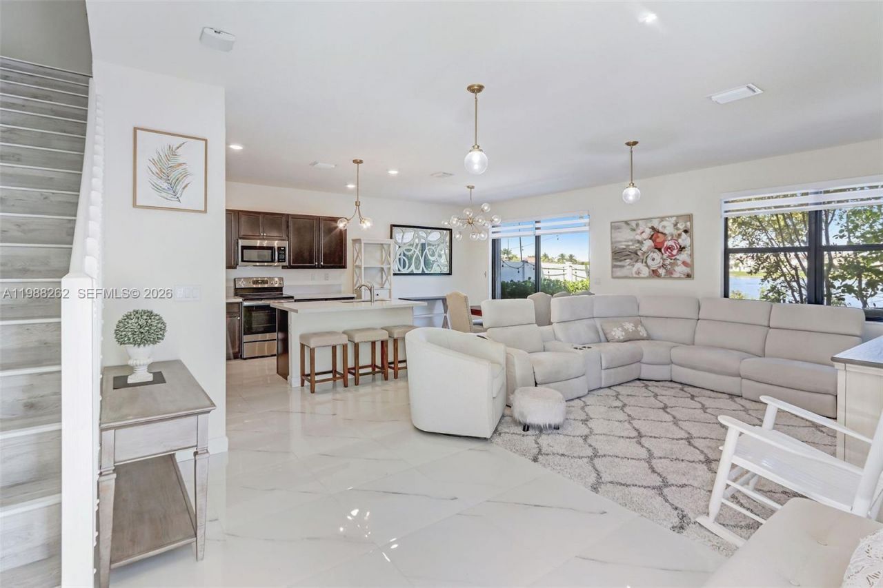 Beautiful corner-unit townhome with stunning lake views in the sought-after Aquabella community. This spacious 4-bedroom, 3 full-bath residence features a bright open-concept layout, stainless steel appliances, and abundant natural light throughout. A full bedroom and full bathroom on the first floor provide added flexibility, perfect for guests, in-laws, or a private office. Step outside to your private fenced backyard with electric retractable roof, creating the perfect space for year-round en...Beautiful corner-unit townhome with stunning lake views in the sought-after Aquabella community. This spacious 4-bedroom, 3 full-bath residence features a bright open-concept layout, stainless steel appliances, and abundant natural light throughout. A full bedroom and full bathroom on the first floor provide added flexibility, perfect for guests, in-laws, or a private office. Step outside to your private fenced backyard with electric retractable roof, creating the perfect space for year-round entertaining while enjoying peaceful water views. Located in a gated community offering resort-style amenities including clubhouse, pools, jacuzzi, fitness center, playground, and 24-hour security. Prime location near major highways, shopping, dining, and top-rated schools. A must-see, dont miss this opportunity!