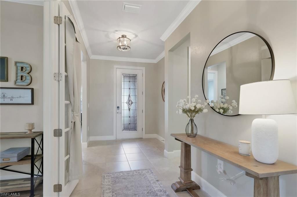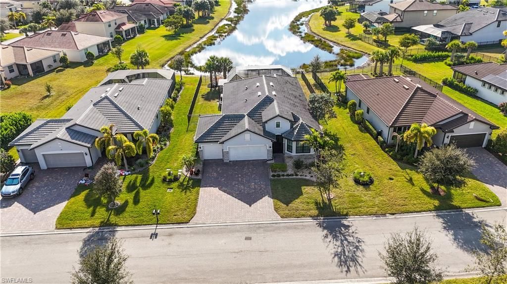 This home is the crown jewel of the Hampton Lakes neighborhood, sitting at the base of a large lake on a fenced oversized lot. The huge 3 car garage is custom with added space for storage. This home has been upgraded with with a large custom built, heated salt water pool and spa. the outdoor bar, dining area, 70 large screen smart TV,(conveys) LED lights and built in speakers for entertaining makes this property incredibly unique. Outdoor living area boasts a custom panoramic screen enclosure fo...This home is the crown jewel of the Hampton Lakes neighborhood, sitting at the base of a large lake on a fenced oversized lot. The huge 3 car garage is custom with added space for storage. This home has been upgraded with with a large custom built, heated salt water pool and spa. the outdoor bar, dining area, 70 large screen smart TV,(conveys) LED lights and built in speakers for entertaining makes this property incredibly unique. Outdoor living area boasts a custom panoramic screen enclosure for maximum views. Gorgeous setting for morning coffee and watching the abundant wildlife at sunset. Tile and luxury vinyl floors in bedrooms and closets. This home features large master bedroom with dual sinks, shower, water closet and very spacious walk in closet. Take a walk or golf cart ride to the club house to enjoy the weight room or beach style pool, pickel ball courts, playground and large grass areas to play with your kids or dogs.