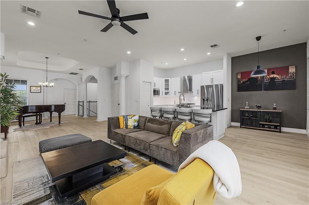 Step into exceptional value and modern luxury in this beautifully remodeled end unit coach home in the sought after Meadows of Estero, offering 2878 square feet of refined living space designed for comfort, style, and effortless entertaining. This rare offering stands out with all new flooring throughout, a completely renovated kitchen featuring shaker style soft close cabinetry, Caesar Stone Quartz countertops, new LG stainless steel appliances, and a spacious open layout that flows seamlessly ...Step into exceptional value and modern luxury in this beautifully remodeled end unit coach home in the sought after Meadows of Estero, offering 2878 square feet of refined living space designed for comfort, style, and effortless entertaining. This rare offering stands out with all new flooring throughout, a completely renovated kitchen featuring shaker style soft close cabinetry, Caesar Stone Quartz countertops, new LG stainless steel appliances, and a spacious open layout that flows seamlessly into bright living and dining spaces with soaring ceilings and abundant natural light. The expansive primary suite features a relaxing sitting area, a spa inspired bath with soaking tub and walk in shower, and a wardrobe sized walk in closet. Enjoy peaceful mornings and tranquil evenings on the spacious screened lanai overlooking a private natural backdrop, plus a charming Juliet balcony to welcome fresh breezes. Thoughtful upgrades include accordion storm shutters, designer fixtures, fresh finishes, and a pre built elevator shaft for future convenience if desired. Additional highlights include a versatile den, two guest bedrooms, powder room, large laundry room, and an attached two car garage. Nestled in a gated Estero community known for spacious residences and resort amenities, residents enjoy a clubhouse, fitness center, billiards room, pool and spa, and social spaces all just minutes from Coconut Point, Gulf Coast Town Center, RSW Airport, and some of Southwest Floridas best beaches, golf, and dining. This is one of the most updated and best priced spacious homes in the community, offering luxury, convenience, and an unbeatable value in a prime location.
