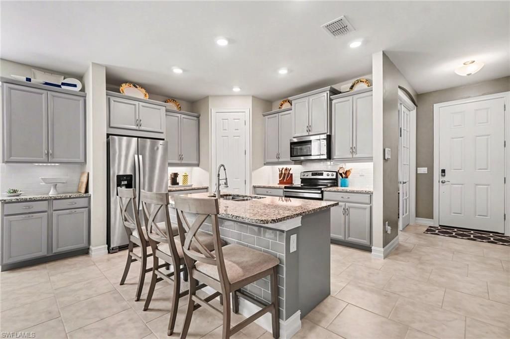 EXPERIENCE MODERN LUXURY AND YOUR VERY OWN PRIVATE TROPICAL PARADISE and a 2.5 CAR GARAGE - ALL IN THE HEART OF MAGNOLIA LANDING! Step into this beautifully updated home where every detail has been thoughtfully designed for style and comfort. -Nestled among mature landscaping with charming cement curbing, this residence boasts a sophisticated palette of grey cabinetry with finished trim molding on top and below, complemented by soft grey ceramic tile on the front of the bar. Under-cabinet lighti...EXPERIENCE MODERN LUXURY AND YOUR VERY OWN PRIVATE TROPICAL PARADISE and a 2.5 CAR GARAGE - ALL IN THE HEART OF MAGNOLIA LANDING! Step into this beautifully updated home where every detail has been thoughtfully designed for style and comfort. -Nestled among mature landscaping with charming cement curbing, this residence boasts a sophisticated palette of grey cabinetry with finished trim molding on top and below, complemented by soft grey ceramic tile on the front of the bar. Under-cabinet lighting and a stylish backsplash enhance the kitchen's modern appeal, while additional cabinets, cupboards, and matching backsplash in the dining area create seamless continuity. -Warm grey accent walls flow throughout the home, paired with new fans and lighting to brighten every space. Tile flooring extends throughout (no carpet here), while upgraded accordion fabric shades and blinds on sliding door add both elegance and functionality. Closets have been completely redone, offering organized and welcoming storage in every room. -The laundry room continues the high-end finishes with matching cabinetry, backsplash, shelving, a mud sink, and an upgraded Samsung washer and dryer. -Step outside to your private tropical oasis, framed by lush trees providing natural privacy. Relax on the lanai, soak in the hot tub, or entertain on the outdoor patio-your personal retreat awaits. -All of this is located in the desirable Magnolia Landing community, offering a serene, family-friendly neighborhood with easy access to local amenities.