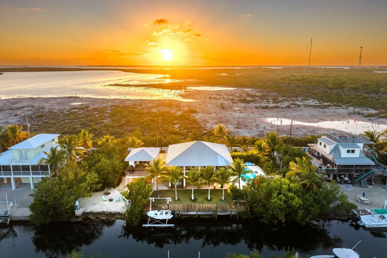Private Ramrod Key Sanctuary with Sunset Views & Exceptional Boating Access.A rare find, spanning over a 15,000 sq ft, fully fenced lot, offering remarkable privacy, natural beauty, and spectacular sunrise and sunset views. The main home features expansive impact glass door systems in the front and rear, filling the living space with natural light and framing canal views, distant views of the Niles Channel Bridge, expansive salt flats, and vibrant Keys sunsets.The interior showcases tongue-and-g...Private Ramrod Key Sanctuary with Sunset Views & Exceptional Boating Access.A rare find, spanning over a 15,000 sq ft, fully fenced lot, offering remarkable privacy, natural beauty, and spectacular sunrise and sunset views. The main home features expansive impact glass door systems in the front and rear, filling the living space with natural light and framing canal views, distant views of the Niles Channel Bridge, expansive salt flats, and vibrant Keys sunsets.The interior showcases tongue-and-groove cypress walls, tile flooring throughout, and a coastal kitchen with stainless appliances, Viking gas cooktop, built-in oven, and microwave, open to the inviting living area. New decking wraps the home with a covered rear deck and open front porch.The spacious primary suite offers a private retreat with ensuite bath, sitting area, built in office & walk-in closet with laundry. Living spaces open to the surrounding decks, offering seamless indoor outdoor flow. The detached guest quarters provide privacy with an ensuite bedroom, full bath, and an outdoor kitchen with built-in grill, refrigerator, and sink.Additional features include a 500 lb exterior elevator, cable railings, tiki hut, heated pool, and a 60-ft dock with boat lift and davits. Enjoy quick access to both the Atlantic Ocean and Gulf waters. The property grounds feature beautiful landscaping, magical garden spaces, and multiple outdoor living areas to enjoy the serene setting.A truly special Keys property offering privacy, boating convenience, and unforgettable views in every direction.
