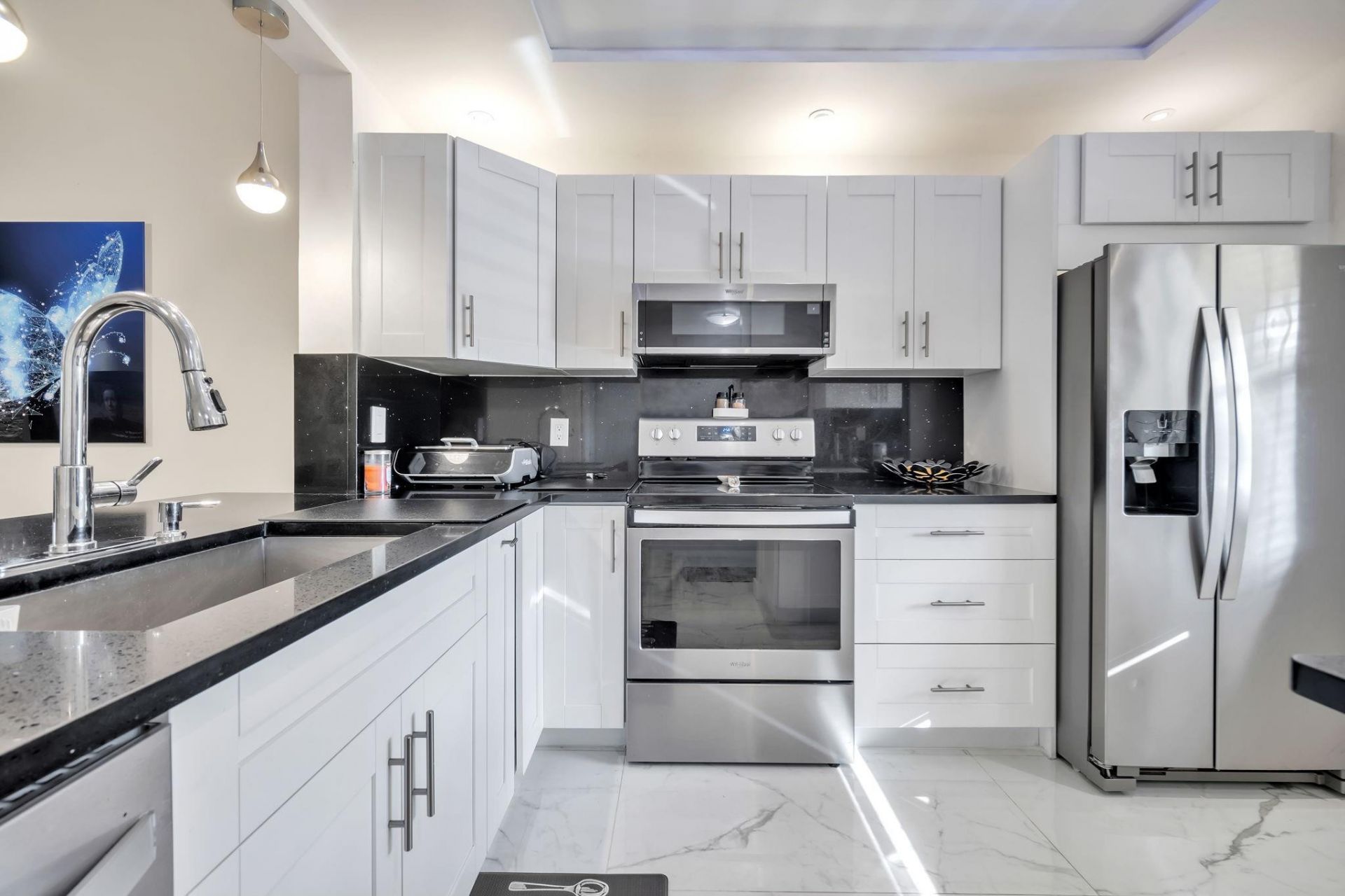 Beautifully remodeled condo featuring a bright, modern design! This stunning unit offers large light-colored ceramic flooring, a stylish accent wall in the living room, and updated lighting fixtures throughout for a clean, contemporary feel. The open kitchen boasts stainless steel appliances, white shaker cabinets, and gorgeous granite countertops. You will fall in love with the master suite, complete with a spacious bedroom and a beautifully updated master bathroom with dual sinks. The guest be...Beautifully remodeled condo featuring a bright, modern design! This stunning unit offers large light-colored ceramic flooring, a stylish accent wall in the living room, and updated lighting fixtures throughout for a clean, contemporary feel. The open kitchen boasts stainless steel appliances, white shaker cabinets, and gorgeous granite countertops. You will fall in love with the master suite, complete with a spacious bedroom and a beautifully updated master bathroom with dual sinks. The guest bedroom has also been tastefully redone and features a beautiful vanity with plenty of storage space. Enjoy peaceful moments on the patio overlooking the serene lake. Also there is a brand new A/C and the patio also includes a storage closet.A must-see home-modern, elegant, and move-in ready!