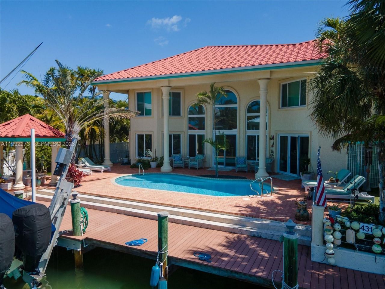 Discover an exceptional DAsign Source designer home in prestigious Key Colony Beach, set on a beautifully landscaped lot with effortless access to both the bay and the open ocean. This spacious 4 bedroom 4 bath, light-filled residence offers generous living areas with soaring ceilings and oversized windows that seamlessly connect the indoors with the stunning natural surroundings. The expansive ground floor is perfectly designed for entertaining and family living, featuring a large living room, ...Discover an exceptional DAsign Source designer home in prestigious Key Colony Beach, set on a beautifully landscaped lot with effortless access to both the bay and the open ocean. This spacious 4 bedroom 4 bath, light-filled residence offers generous living areas with soaring ceilings and oversized windows that seamlessly connect the indoors with the stunning natural surroundings. The expansive ground floor is perfectly designed for entertaining and family living, featuring a large living room, gourmet kitchen, formal dining area, and a dedicated media room and one guest bedroom and a two-car garage currently used as a versatile game room. A whole-home stereo system adds to the refined ambiance throughout. Built with enduring quality, the waterfront home features all-concrete construction and a brand-new custom metal imitation barrel tile roof. At the heart of this private oasis lies a beautiful swimming pool with an inviting tiki hut -- an ideal retreat for family gatherings and relaxed entertaining. Complementing this is a deep-water dock equipped with a powerful 30,000-pound hydraulic boat lift, offering effortless access to the bay and beyond. Perfectly suited for a large family or those who love to host, this magnificent Key Colony Beach estate delivers space, luxury, and unparalleled waterfront living in one of the Florida Keys most sought-after communities.
