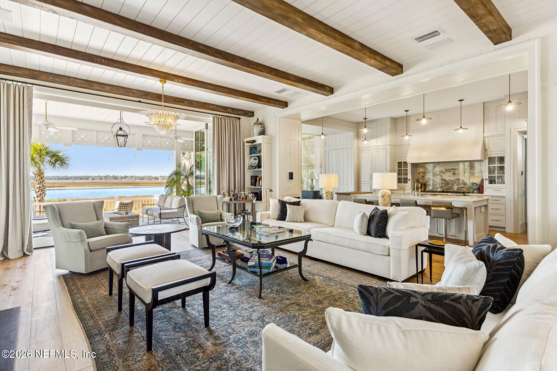 Designed by Historical Concepts and built by Riverside Homes Custom as the 2019 Southern Living Idea House, 50 Cord Grass Court offers 4,500 sq ft with 4 bedrooms, 5.5 baths, and expansive porches designed for sophisticated entertaining and Southern comfort. This bespoke residence delivers timeless architecture, modern luxury, and 121 feet of riverfront living within the private gated community of Crane Island located on Amelia Island. The chef's kitchen features custom cabinetry, quartz counter...Designed by Historical Concepts and built by Riverside Homes Custom as the 2019 Southern Living Idea House, 50 Cord Grass Court offers 4,500 sq ft with 4 bedrooms, 5.5 baths, and expansive porches designed for sophisticated entertaining and Southern comfort. This bespoke residence delivers timeless architecture, modern luxury, and 121 feet of riverfront living within the private gated community of Crane Island located on Amelia Island. The chef's kitchen features custom cabinetry, quartz countertops, Wolf gas range, Sub-Zero refrigeration, Bosch dishwasher, concealed butler's pantry, wine refrigeration, and ample storage and refrigeration for large gatherings. Designer-inspired wallpapers and curated furnishings enhance every space. The great room showcases decorative beams, fireplace, and sweeping river views, while a glass-enclosed sunroom with fireplace provides year-round enjoyment. Outdoor living includes a saltwater pool and spa, outdoor kitchen with pizza oven, fire pit, and private deep-water dock with lift. Additional features include a residential elevator, dumbwaiter, whole-home generator, 4 bed bunkroom, whole-home sound system, advanced security system, and three-car garage plus golf cart bay. This home is being sold furnished with a list of exceptions provided. Located minutes from historic Fernandina Beach and Amelia Island beaches.