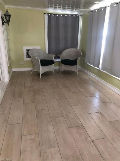 Seller offering a 1 year home warranty and your 2026 HOA fees paid for buyer of this BEAUTIFUL, 2/2 HOME IN 55+ FOREST PARK MOBILE HOME COMMUNITY. You own your own land and have a low HOA fee of only $122.00/MONTH. Home features French doors from the Florida room into the main house and another set to the private backyard, laminate flooring, porcelain tile, interior is painted in light tropical colors and features crown molding. Kitchen is open and has lots of natural light, white kitchen cabine...Seller offering a 1 year home warranty and your 2026 HOA fees paid for buyer of this BEAUTIFUL, 2/2 HOME IN 55+ FOREST PARK MOBILE HOME COMMUNITY. You own your own land and have a low HOA fee of only $122.00/MONTH. Home features French doors from the Florida room into the main house and another set to the private backyard, laminate flooring, porcelain tile, interior is painted in light tropical colors and features crown molding. Kitchen is open and has lots of natural light, white kitchen cabinets, a farm sink, and an island/breakfast bar. Home also features enclosed Florida room with multiple windows and separate ac unit. Home has had some updates which include newer A/C, newer electrical panel, newer hot water heater, repiped with pex, vapor barrier replaced, a preventative termite system with annual inspection, and outdoor shower for cleaning up after your outdoor gardening or adventures. Forest Park is a beautiful park offering free wi-fi, nice amenities & activities, close to I-75, 41, ball parks for watching spring training games, shopping, restaurants. It's also a quick trip to the downtown Fort Myers. Home is in the pet section.