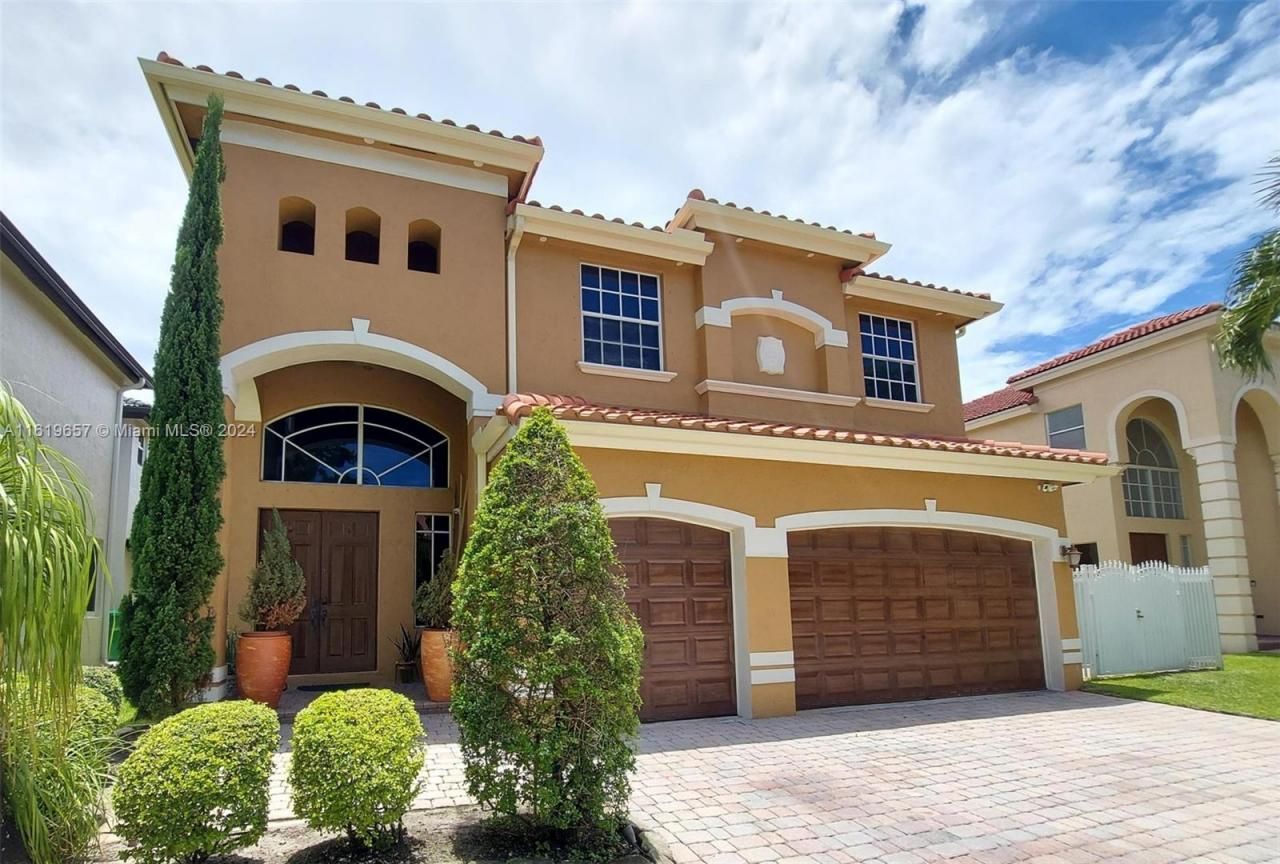 MAGNIFICENT 5 BEDS, 3 BATHS, 3 CARS GARAGE HOUSE WITH A BREATHTAKING LAKE VIEW IN PRESTIGIOUS GATED COMMUNITY OF VIZCAYA. 1 BED & FULL BATH DOWSTAIRS. THE MODERN KITCHEN BOAST NEW STAINLESS-STEEL APPLIANCES, GRANITE COUNTERTOP, LOTS OF GABINETS & ISLAND PERFECT FOR CULINARY ENTHUSIASTS. ALL BATHS HAVE BEEN REDONE. GENEROUS SIZE MASTER BEDROOM W/SITTING ROOM/OFFICE, HUGE DOUBLE CLOSET & TERRACE TO ENJOY THE PEACEFUL LAKE. IMPACT WINDOWS & DOORS AT FIRST FLOOR & ACCORDION SHUTTERS ON SECOND FLOOR. NEW ROOF. TILE & WOOD THROUGHOUT THE ENTIRE HOUSE. PATIO HAS AMPLE SPACE WITH GAZEBO AND BBQ AREA FOR ENTERTAINING FAMILY/FRIENDS. TOTALLY FENCED + BEAUTIFUL LANDSCAPING. COMMUNITY GATED WITH CARD KEY ENTRY, HAS 24/7 SECURITY PATROL. EXCELLENT LOCATION, CLOSE TO SCHOOLS, HIGWAYS, PARKS SHOPPING.