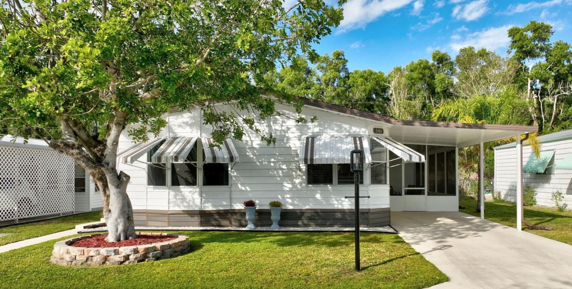 Edit mortgage details for a more accurate paymentA LITTLE SLICE OF PARADISE in Port St Lucie! Beautiful home in desirable 55+ community. 2/2 in the PET section. Quiet area. NO LAND LEASE! Laminate floors throughout. Newer appliances. Newer vanities in both baths, Entire home decorated in soothing colors. A/C 2 years new, including new ducts, home has new tie downs and all PVC plumbing, New front and rear doors. Shed 14x8. Fully screened lanai. Fenced backyard for your furry friends. Low maintenance fee of $197/mo. includes High Speed Internet, cable TV, year round heated pool, club House activities and all user amenities, trash pickup, maintenance of common grounds and on site management. Boat and RV storage available. You pay lawn care, electric and water. Near restaurants, medical facilities, new Aldi's. All measurements approx.
