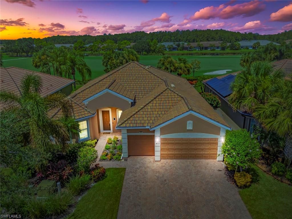 This beautiful DUNWOODY floor plan is located on the 2nd fairway of the Panther Run Golf Course, showcasing GOLF COURSE AND SUNSET VIEWS in the sought-after 55+ Del Webb Naples community with resort-style amenities. This floor plan is comparable to the popular STELLAR model. Inside, the GOURMET KITCHEN impresses with a large island, UPGRADED KITCHENAID APPLIANCES, custom backsplash, abundant cabinetry with pull-out drawers, and large pantry. The primary su...This beautiful DUNWOODY floor plan is located on the 2nd fairway of the Panther Run Golf Course, showcasing GOLF COURSE AND SUNSET VIEWS in the sought-after 55+ Del Webb Naples community with resort-style amenities. This floor plan is comparable to the popular STELLAR model. Inside, the GOURMET KITCHEN impresses with a large island, UPGRADED KITCHENAID APPLIANCES, custom backsplash, abundant cabinetry with pull-out drawers, and large pantry. The primary suite is a retreat of its own, featuring a custom walk-in closet and a spa-like bath with dual vanities and a spacious WALK-IN SHOWER WITH JETS. With 3 bedrooms plus a den, there’s ample flexibility for guests, an office, or hobbies. Flooring includes tile on the diagonal, wood in the den, and upgraded carpet in bedrooms. During storms you will have a peace of mind, the home is equipped with ELECTRIC HURRICANE SCREENS on all windows and doors. A 4-foot EXTENDED 3-car GARAGE offers room for a golf cart, workshop, or additional storage and extra outlets for all your needs. Step outside to an EXTENDED SCREENED LANAI overlooking the fairway. RECENT UPDATES include a NEW HOT WATER HEATER, replaced AC coils, CUSTOM LANDSCAPING, WASHER, and more! GOLF LOVERS —Panther Run Golf Club offers optional MEMBERSHIPS with premium golf experiences just steps from your backyard. In Del Webb Naples, you’ll enjoy WORLD-CLASS AMENITIES that rival luxury resorts: dine at the Rusty Putter Restaurant, soak in the RESORT-STYLE or LAP POOLS, break a sweat in the state-of-the-art FITNESS CENTER, and play your way through PICKLEBALL, TENNIS, bocce, billiards—even a top-tier GOLF SIMULATOR! Need groceries, church, or a bite to eat? Just hop in your golf cart and cruise into town—Publix and the heart of Ave Maria are just minutes away. This isn’t just a home—it’s a LIFESTYLE UPGRADE in one of Southwest Florida’s most vibrant 55+ communities. Don’t miss your chance to live where fun, fitness, and friendships flourish year-round!