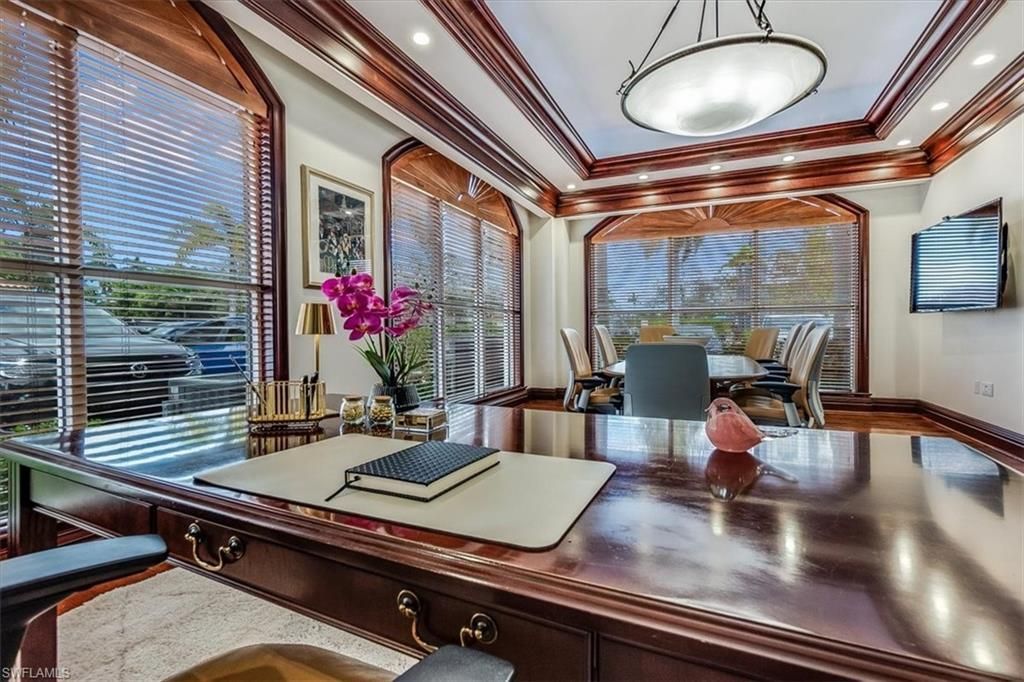 This sophisticated and character-rich executive office suite is a rare opportunity to acquire. Prestige address on US 41 near Downtown Naples. It features over 3000 square feet of thoughtfully designed layout including 10 large private offices, with two extra-large offices that can easily function as conference rooms or boardrooms, offering flexibility for meetings, presentations, and collaborative use. At the center of the suite is a flex collaboration lounge, ideal for team interaction, and o...This sophisticated and character-rich executive office suite is a rare opportunity to acquire. Prestige address on US 41 near Downtown Naples. It features over 3000 square feet of thoughtfully designed layout including 10 large private offices, with two extra-large offices that can easily function as conference rooms or boardrooms, offering flexibility for meetings, presentations, and collaborative use. At the center of the suite is a flex collaboration lounge, ideal for team interaction, and overflow workspace. Additional amenities include a spacious and classy lobby, a kitchenette, and coffee bar, floor to ceiling windows, elegant crown molding and refined wood millwork, making it ideal for a distinguished and sophisticated workplace that reflects professionalism and success. This distinguished building has the perfect privacy/and exclusivity with a blend of well established tenants with little signage and a beautiful building lobby. A great fit for a family office, wealth management, boutique law/ CPA firms, Insurance companies, Business consultants. This space is also well-suited for an occupant who can utilize multiple private offices or Medical, health or Wellness without needing heavy daily traffic. There are 2 Deeded exclusive covered parking spaces and shared public parking for the building.