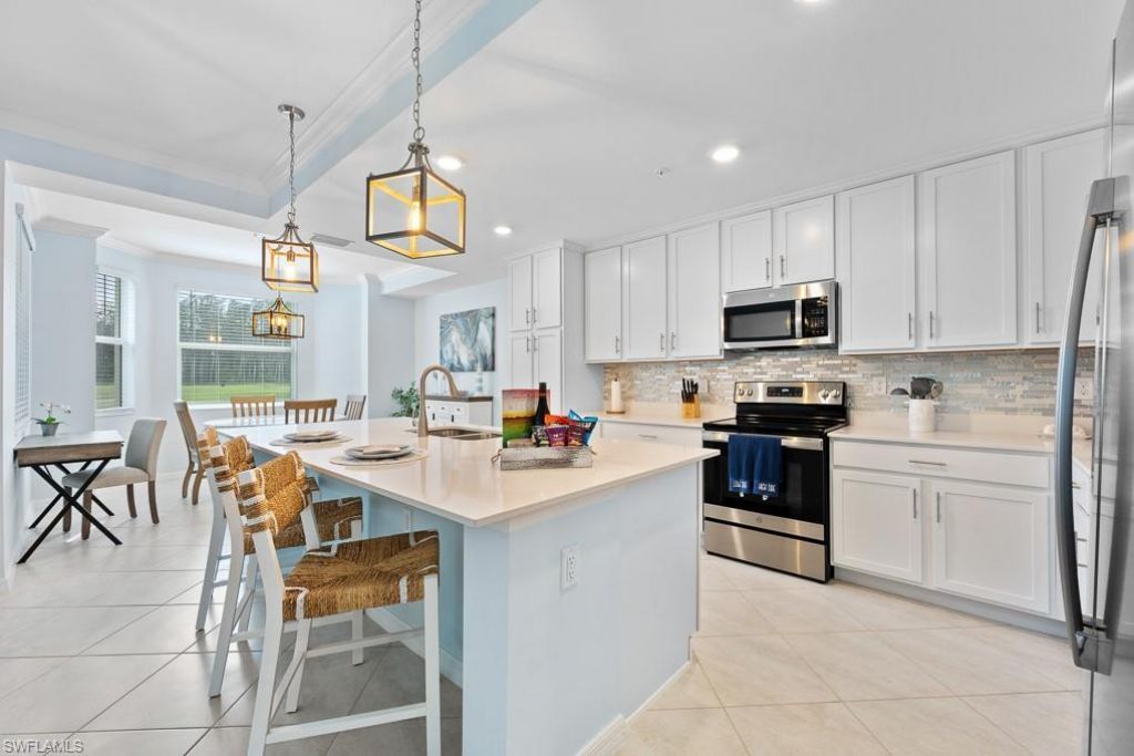 Welcome to an exceptional opportunity in The National Golf & Country Club at Ave Maria—now vacant and ready for immediate enjoyment or investment just in time for the 2026 season. This highly sought-after first-floor Birkdale model is being offered fully turnkey and move-in ready, ideal for seasonal use, rental income, or full-time living. This well-maintained condo offers 2 bedrooms, 2 bathrooms, and 1,154 sq. ft. of open-concept living and showcases the coveted trifecta of views—...Welcome to an exceptional opportunity in The National Golf & Country Club at Ave Maria—now vacant and ready for immediate enjoyment or investment just in time for the 2026 season. This highly sought-after first-floor Birkdale model is being offered fully turnkey and move-in ready, ideal for seasonal use, rental income, or full-time living. This well-maintained condo offers 2 bedrooms, 2 bathrooms, and 1,154 sq. ft. of open-concept living and showcases the coveted trifecta of views—golf course, water, and preserve—creating a rare and serene backdrop. The kitchen features a large island, stainless steel appliances, pantry, and upgraded tile backsplash, flowing seamlessly into the living and dining areas. The screened lanai is the perfect place to relax and enjoy peaceful sunsets and scenic views. Upgrades throughout include crown molding, fresh designer paint, tasteful accent walls, and tile flooring throughout—no carpet. The owner’s suite offers a walk-in closet and an en-suite bath with a glass-enclosed shower, while the guest bedroom and full bath provide privacy and comfort for visitors. Additional features include impact-resistant windows and doors, a full laundry room, covered carport, and ample guest parking. The unit is conveniently located near a satellite pool for easy access. This condo includes a private bundled golf membership, providing unlimited access to the championship 18-hole course and world-class resort amenities, including resort and lap pools, fitness center with classes, full-service spa, pickleball, tennis, bocce, dining, and more. HOA fees cover cable, internet, water, trash, exterior maintenance, pest control, and 24-hour security for worry-free ownership. Turnkey. Vacant. Upgraded. Bundled with golf. Featuring rare views and a prime location, this Birkdale condo is ready to be yours for the 2026 season and beyond.