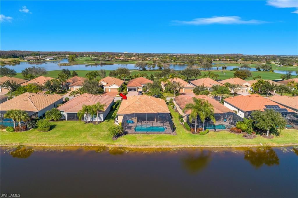 Discover one of the best views in Del Webb Naples at this beautifully maintained 2013 Pinnacle model, offering 3 bedrooms plus a den, 3 full baths, and 2,496 sq ft of gracious living space. Perfectly positioned with southern exposure, enjoy breathtaking lake-to-golf course vistas overlooking the 10th green—golf membership included with purchase! Step outside to your oversized heated saltwater pool with sun shelf (added 2021), fully screened lanai with roll-down hurricane shades, ...Discover one of the best views in Del Webb Naples at this beautifully maintained 2013 Pinnacle model, offering 3 bedrooms plus a den, 3 full baths, and 2,496 sq ft of gracious living space. Perfectly positioned with southern exposure, enjoy breathtaking lake-to-golf course vistas overlooking the 10th green—golf membership included with purchase! Step outside to your oversized heated saltwater pool with sun shelf (added 2021), fully screened lanai with roll-down hurricane shades, accordion shutters on windows, and impact-resistant features for peace of mind. Recent upgrades include a 2022 master bath remodel (expanded shower, new counters, custom closet system), new HVAC, exterior paint, luxury vinyl flooring in bedrooms (2021), upgraded stainless appliances with induction cooktop, and a new dishwasher (2025). Inside, find crown molding throughout, granite counters, under/over-cabinet lighting, pendant lights, custom fans, built-in cabinets, walk-in closets, and a spacious 3-car extended garage with epoxy floor and insulated garage door. The split-bedroom great room floor plan flows seamlessly to the screened lanai and pool area—ideal for relaxing or entertaining. Nestled in the friendly, gated Del Webb Naples 55+ community, enjoy resort-style amenities: 18-hole golf course, clubhouse, fitness center, pools, spa, tennis/pickleball/bocce courts, dog park, billiards, library, restaurant, and more. HOA covers lawn maintenance, cable, irrigation, and recreation. This move-in-ready gem combines luxury upgrades, unbeatable views, and an active lifestyle in one of Naples most welcoming communities. Brand new golf cart available separately for sale. Dont miss this amazing opportunity!