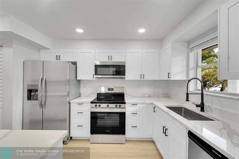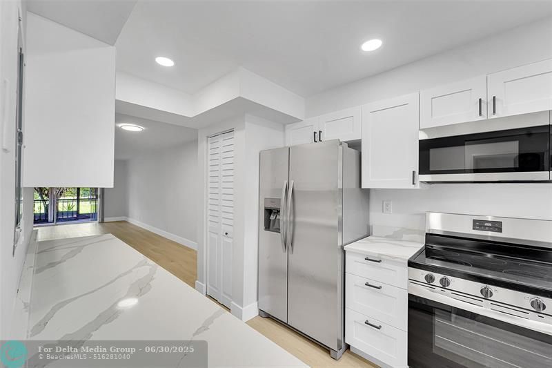 AMAZING PRICE FOR THIS QUALITY! Top of the line all the way! 2 bed 2 bath ground floor condominium unit. Open kitchen Quartz counter top. Custom white cabinets lots of storage. High end Stainless appliances. Washer & dryer closet inside unit. Open floor plan w/ lots of natural light. Luxury vinyl plank flooring throughout. Updated bathrooms w/ walk-in showers. Double sink in master bathroom. Spacious master bedroom w/ 2 walk-in closets. Relaxing garden & pool view from your private screen patio....AMAZING PRICE FOR THIS QUALITY! Top of the line all the way! 2 bed 2 bath ground floor condominium unit. Open kitchen Quartz counter top. Custom white cabinets lots of storage. High end Stainless appliances. Washer & dryer closet inside unit. Open floor plan w/ lots of natural light. Luxury vinyl plank flooring throughout. Updated bathrooms w/ walk-in showers. Double sink in master bathroom. Spacious master bedroom w/ 2 walk-in closets. Relaxing garden & pool view from your private screen patio. HOA fees including cable & internet. Well maintained building w/ reserve funds. New roof 2020. Active 55+ gated community. Clubhouse, heated pool, BBQ.