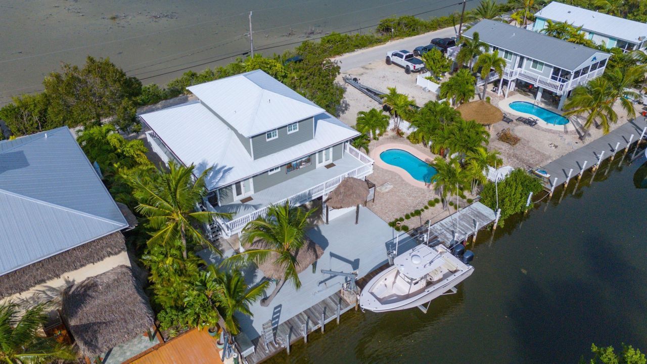 Nestled on the picturesque shores of Ramrod Key, this stunning waterfront property is the epitome of tropical luxury. With 3 bedrooms, 2 bathrooms, and 2,229 square feet of thoughtfully designed living space, this home offers an ideal blend of comfort and high-end amenities on a spacious 9,000 square foot lot. Completely remodeled in 2018, including a new roof, this property is ready for immediate enjoyment.Step into an open-concept living area featuring 10-foot ceilings, while the master bedroo...Nestled on the picturesque shores of Ramrod Key, this stunning waterfront property is the epitome of tropical luxury. With 3 bedrooms, 2 bathrooms, and 2,229 square feet of thoughtfully designed living space, this home offers an ideal blend of comfort and high-end amenities on a spacious 9,000 square foot lot. Completely remodeled in 2018, including a new roof, this property is ready for immediate enjoyment.Step into an open-concept living area featuring 10-foot ceilings, while the master bedroom boasts soaring cathedral ceilings with beautiful whitewashed cypress, adding a coastal charm to the elegant interior. The kitchen is a chef's dream, featuring quartz countertops, cherry hardwood cabinets with self-closing doors, a gas cooktop, and a convection oven. The master bathroom includes a luxurious 6-foot jetted tub with an on-demand water heater, creating the perfect place to unwind.Outdoor living is equally impressive, with a heated pool, two tiki huts featuring custom bars, and a spacious wrap-around deck offering panoramic open-water and sunset views. Boaters will appreciate the property's 14,000-pound boat lift, excellent boating access, and 50-amp shore power along with RV hookup complete with sewer connection. Relax by the gas fire pit, pick fresh fruit from the yard, and entertain with ease thanks to the exterior and interior sound systems.This fenced property, perfect for pets, also includes underground power, Wi-Fi, a 50-amp RV hookup, and plenty of storage. For the avid angler there's a fish-cleaning station and an outdoor shower. Combining privacy, luxury, and functionality, this Ramrod Key Oceanside gem is a slice of paradise waiting to be enjoyed. Easy and fun to show!!!