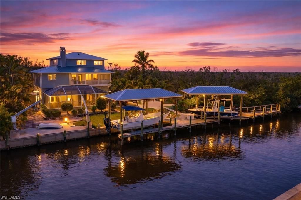 Nestled in the tranquil fishing community of Bokeelia on Pine Island, Florida, this home offers a private retreat with close proximity to local amenities. This 3 story, pool home is located at the end of a quiet road, has a private gate to access almost 1/2 an acre of waterfront property! Downstairs you will find the entry way which leads you to an air conditioned room, that would make an excellent tackle room, along with 1 bedroom and 1 bathroom. The 2nd floor has a nice open living space with ...Nestled in the tranquil fishing community of Bokeelia on Pine Island, Florida, this home offers a private retreat with close proximity to local amenities. This 3 story, pool home is located at the end of a quiet road, has a private gate to access almost 1/2 an acre of waterfront property! Downstairs you will find the entry way which leads you to an air conditioned room, that would make an excellent tackle room, along with 1 bedroom and 1 bathroom. The 2nd floor has a nice open living space with a cozy fireplace and functional kitchen with ample space. You will find a wrap around, screened in porch overlooking the mangroves AND a small outdoor elevator. The 2nd and 3rd bedroom, along with a bathroom are on the 2nd floor as well. The 3rd floor has an extremely large master suite, surrounded by wall-to-wall windows. The in ground, heated pool, can be enjoyed all year long. Best of all- this property is located on a deep water, Gulf Access canal, with TWO boat lifts, composite deck and an additional set of davits. You are just minutes away from Boca Grande, Cayo Costa, Cabbage Key and North Captiva. Time to start living the island life!