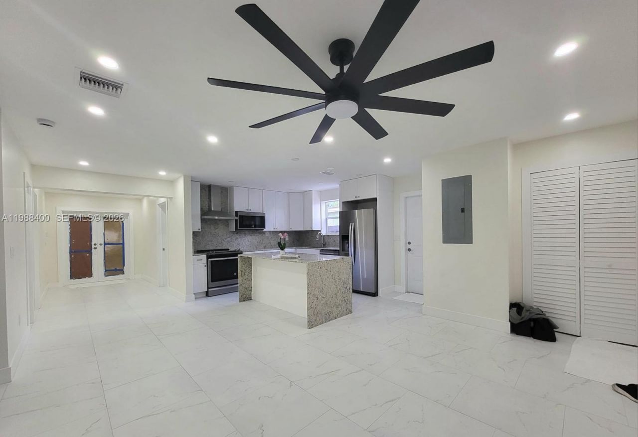 Spacious single family home with 5 bedrooms and 3 bathrooms. Fully renovated a year ago. All impact windows & doors, custom kitchen with island and bar seating, granite countertops, and phone charging stations. Tankless water heater, stainless steel appliances, stacked full-size washer & dryer. Custom kitchen cabinets & backsplash. Modern bathrooms with frameless shower doors and white Venetian porcelain tiling. Newer AC with nest smart thermostat. HUGE backyard with 24 ft x 48 ft patio, pergola...Spacious single family home with 5 bedrooms and 3 bathrooms. Fully renovated a year ago. All impact windows & doors, custom kitchen with island and bar seating, granite countertops, and phone charging stations. Tankless water heater, stainless steel appliances, stacked full-size washer & dryer. Custom kitchen cabinets & backsplash. Modern bathrooms with frameless shower doors and white Venetian porcelain tiling. Newer AC with nest smart thermostat. HUGE backyard with 24 ft x 48 ft patio, pergola covering and giant ceiling fan?perfect for entertaining and those BBQ nights! Schedule your private showing asap and fall in love with your new home in the heart of Pembroke Pines.