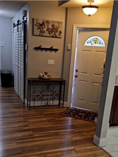Beautifully updated courtyard villa in gated community. Features tile and laminate flooring, renovated kitchen with stainless steel appliances and wooden cabinets, updated bathrooms, accordion shutters on all windows and doors, and ceiling fans in every bedroom. Includes screened patio, exterior storage, and private gated courtyard. Community offers an intimate clubhouse with pool and a small play area for children--ideal for families or anyone seeking a welcoming neighborhood..