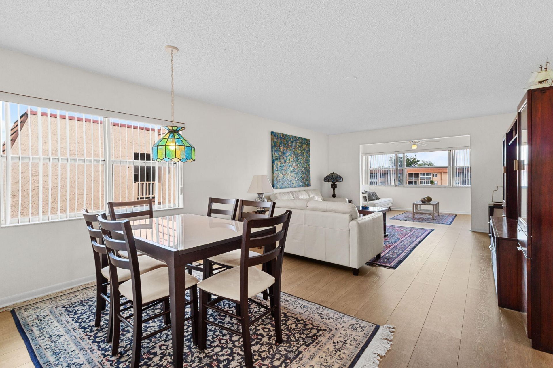 Elegant 2-bedroom, 2-bathroom corner residence offering tranquil water views and refined living. Features an eat-in kitchen with ample cabinetry, updated appliances, and a seamless flow into the dining area. Wood flooring throughout main living spaces and an enclosed Florida room create a warm, inviting atmosphere. Spacious primary suite with a walk-in closet. Ideally positioned near the satellite pool. Enjoy resort-style living with premier amenities including clubhouse, golf, indoor & outdoor...Elegant 2-bedroom, 2-bathroom corner residence offering tranquil water views and refined living. Features an eat-in kitchen with ample cabinetry, updated appliances, and a seamless flow into the dining area. Wood flooring throughout main living spaces and an enclosed Florida room create a warm, inviting atmosphere. Spacious primary suite with a walk-in closet. Ideally positioned near the satellite pool. Enjoy resort-style living with premier amenities including clubhouse, golf, indoor & outdoor pools, fitness center, and racquet sports. All furniture and artwork are negotiable.